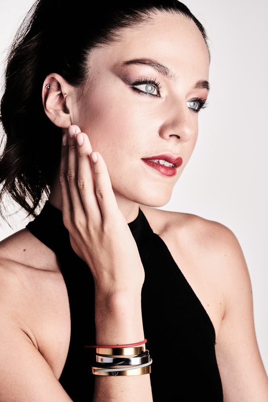 Unser Armschmuck ist ein Statement. Durch farbige Lederbänder kannst Du Deinen Armreif perfekt an Dein Outfit und Style anpassen: Und Farbe bekennen.