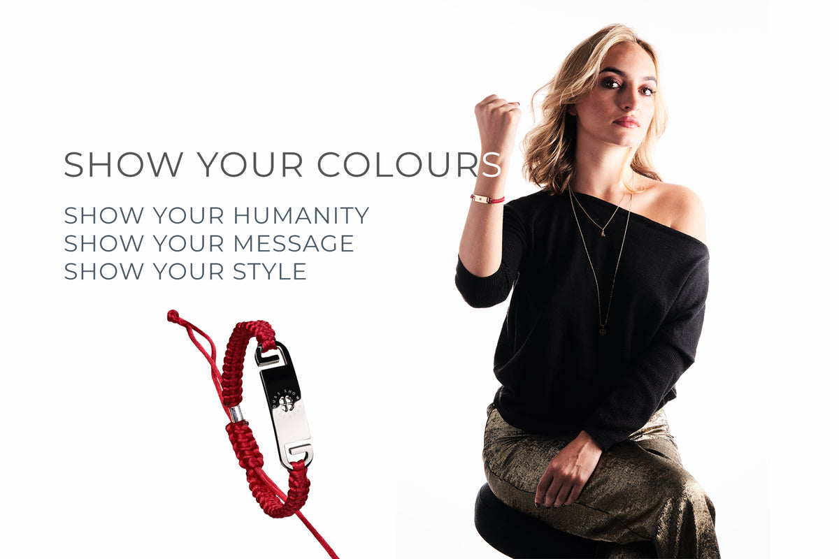 ShowYourColours: Armschmuck mit einem weltweit einzigartigen Design. Aufgeladen mit der vielleicht wichtigsten Botschaft der Welt. Schmuck gegen Rassismus und Gewalt - für eine bunte Welt in Frieden.